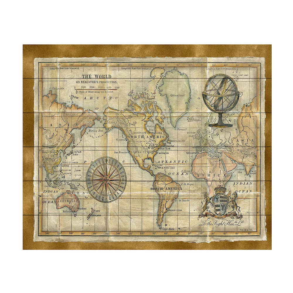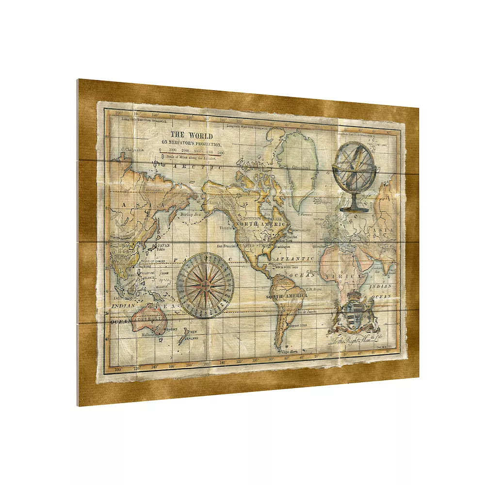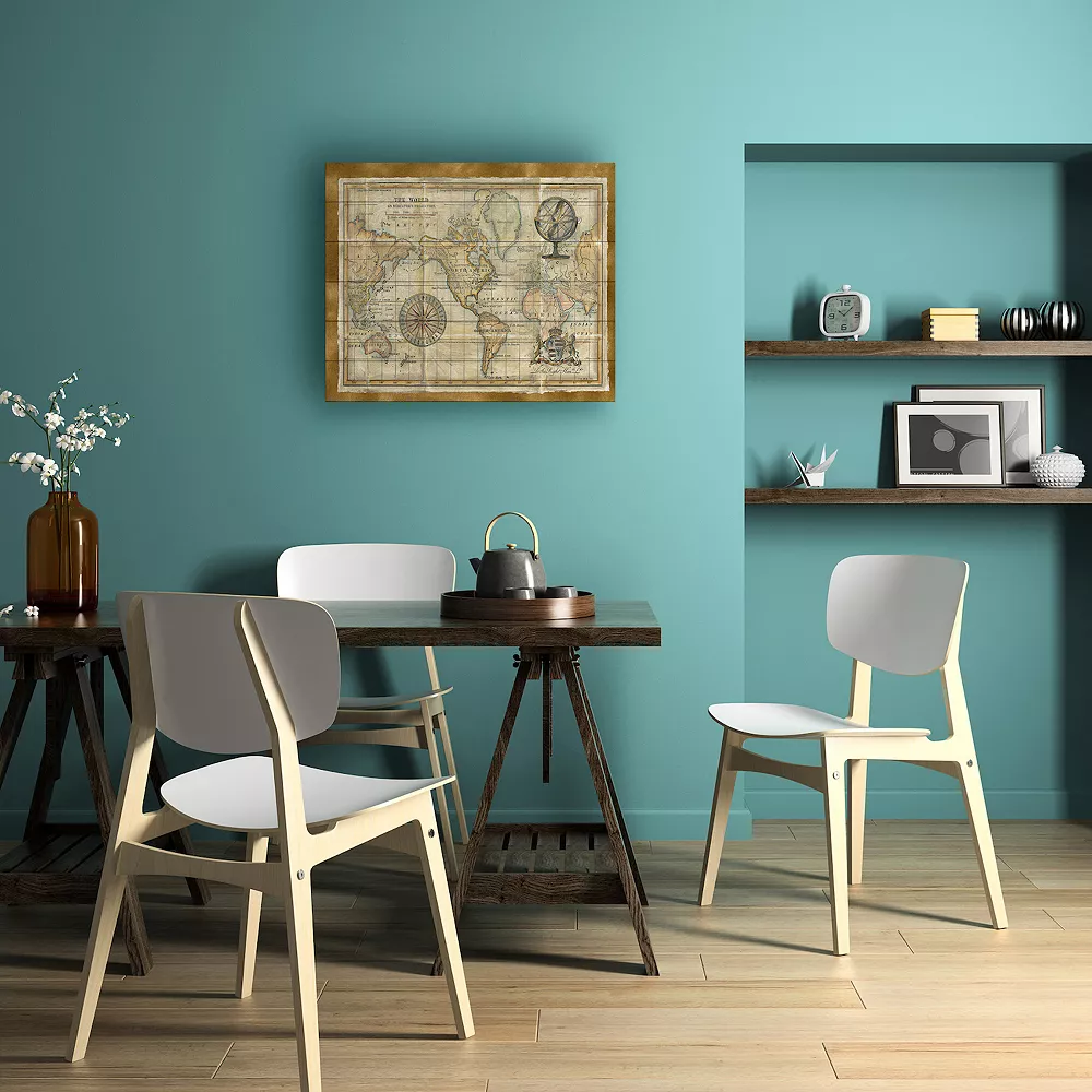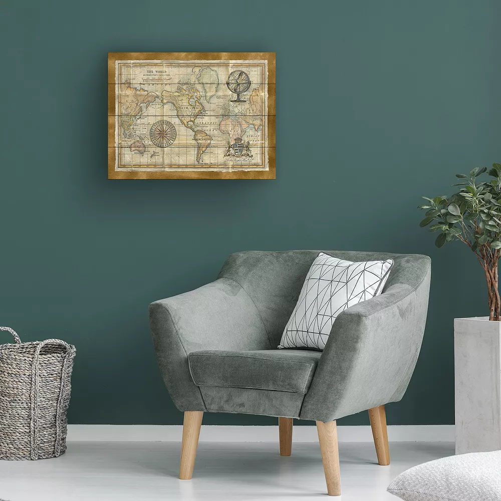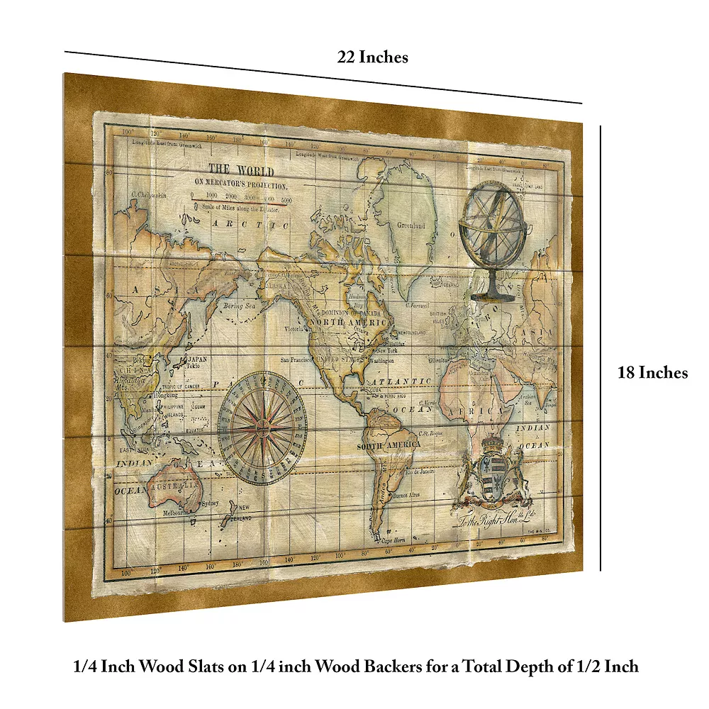 Give your wall a makeover with this Trademark Fine Art Antique World Map Framed Wood Slat Wall Art.