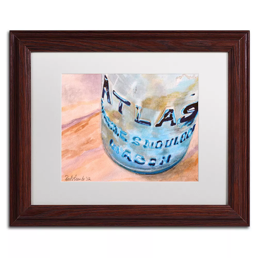 Accent your wall with this lovely Trademark Fine Art Atlas Jar wood finish matted framed wall art.
