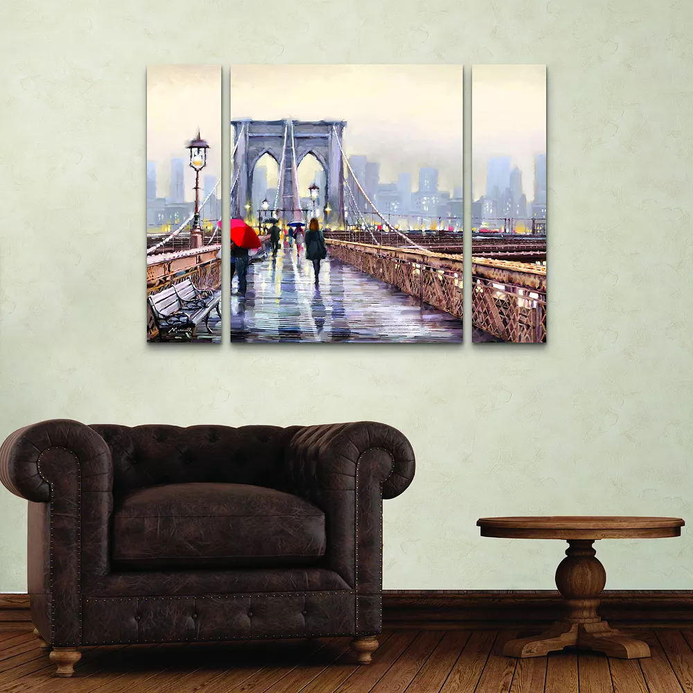 Show off your impeccable taste with this Brooklyn Bridge Canvas Wall Art 3-piece Set in your home.