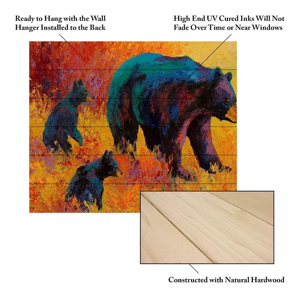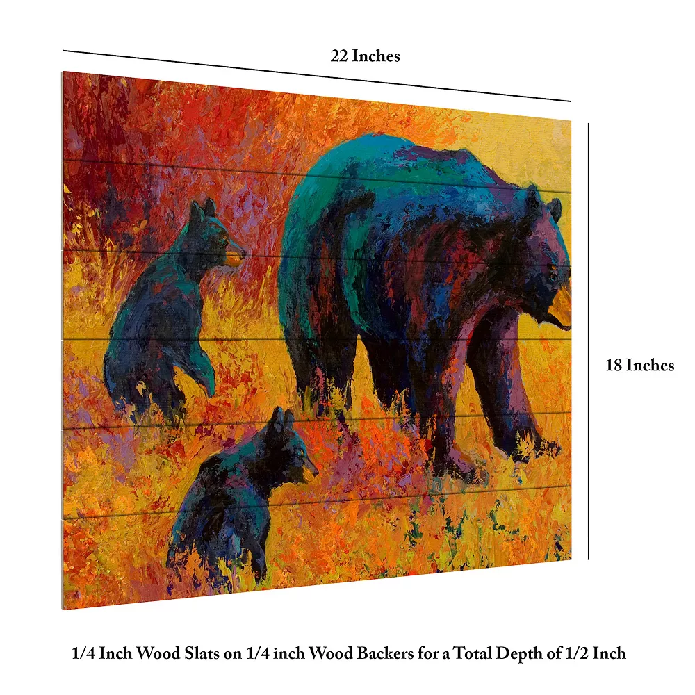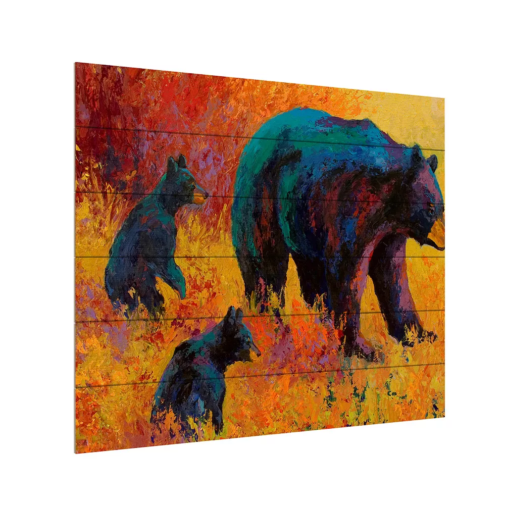 These bears on a wooden slat will look bright and colorful on your wall.