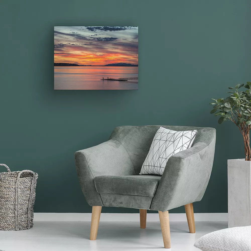 Show off your style when you add this Trademark Fine Art Sunset Pier Wood Slat Wall Art to your home decor.